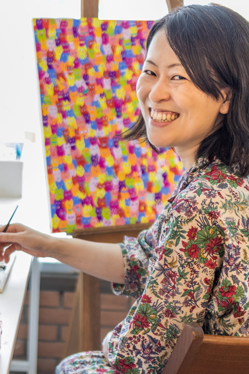 こんにちは、アーティストのai sayamaです。 HPをご覧いただき、ありがとうございます。 このサイトでは、私のアート作品やプロジェクト、最新の展示情報などをお届けしています。 私の作品テーマは「世界を もっと ワクワク」 作品を見た方にワクワク、楽しい気持ちを伝えたい、笑顔になってほしい、いつもそんな気持ちで絵を描いています。 人生にはいろんな困難や悲しいこと、思い通りにはいかないようなことも起こりますが、私は絵やそれにまつわる活動を通じて、最期の時まで楽しさやユーモアで、自分の、そしてより多くの人の心に火を灯し続けていきたいと思います。 ai sayama ワールドを楽しんでいただければ幸いです。 with Love, ai sayama ai sayama プロフィール 栃木県出身、東京都在住。上智大学 文学部史学科を卒業後、IT会社勤務を経て2018年にアーティストとして本格的に活動を開始。 猫や妖怪・花などをモチーフに多色使いでストーリー性のある群集表現を得意とする。 個展・アートフェアなどで作品発表を行うとともに、2022年にはブランド「ai sayama」を立ち上げ、筆記具メーカーのPILOTをはじめ、各分野のメーカーから文具・雑貨・アパレル・版画などが全国販売。 2019年にはパリ、2022年からは台湾の展示会にも定期的に出展し、台北で個展を開催。 2023年より日本伝統工芸コラボキャラクター「ねこだるま」を発表。海外での活動も広がっている。