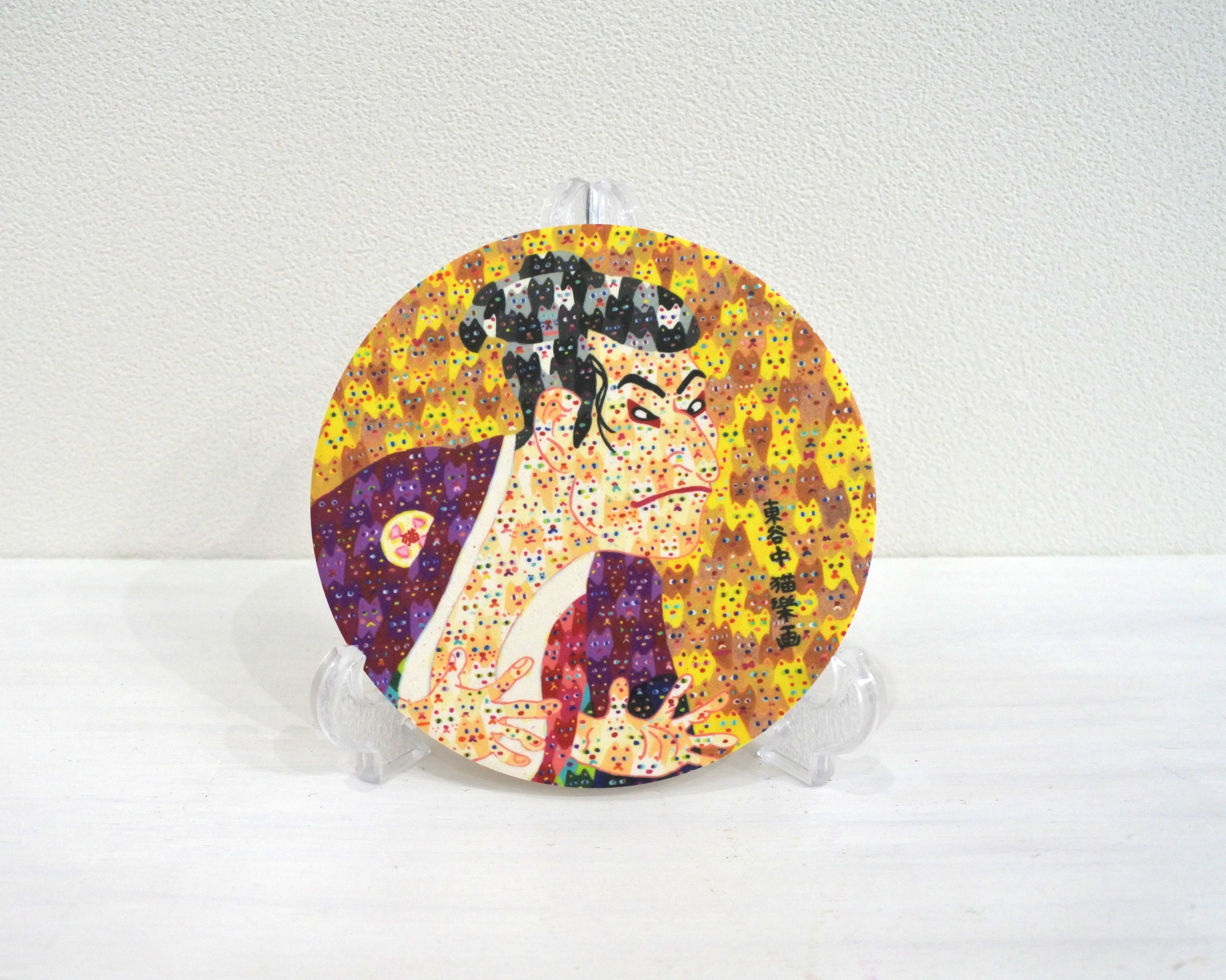 美濃焼コースター 浮世絵 × ねこだらけシリーズ「三代目大谷猫次の奴 江戸兵衛」